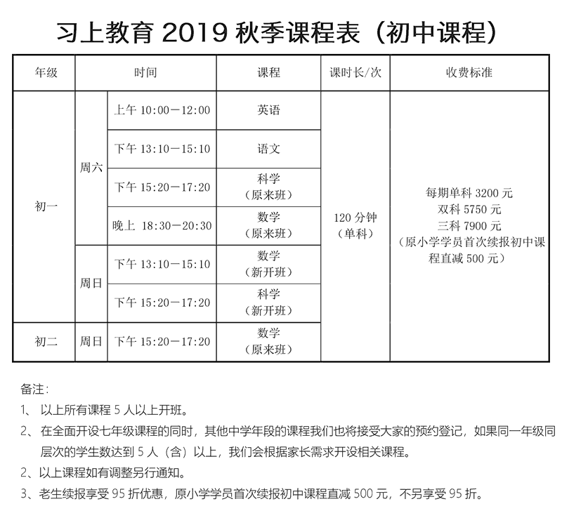 (初中的课程时间上有较大的调整)